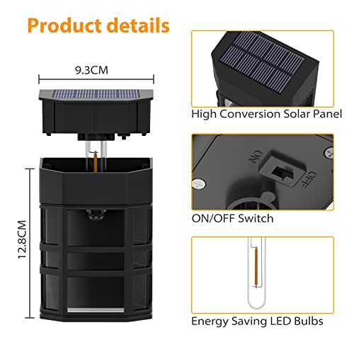 • 🔋【Solar Powered & Auto ON/OFF】Say goodbye to high electricity bills. The solar panels in the Solar wall lights have a high conversion rate, by absorbing sunlight during the day and converting it into energy.Solar deck lights will auto charge during the daytime and then light up your garden every night due to the day-night sensors design!
