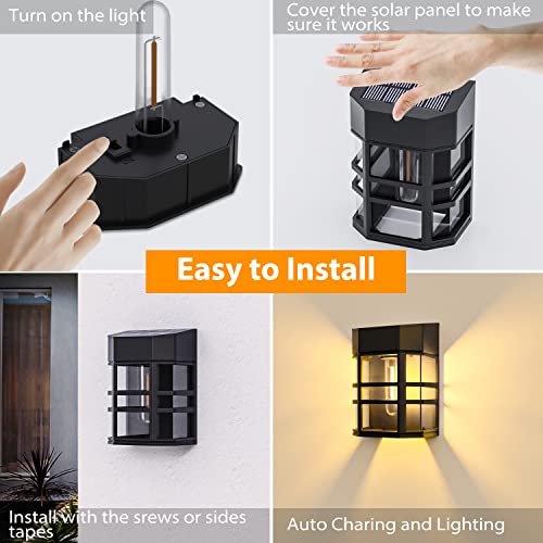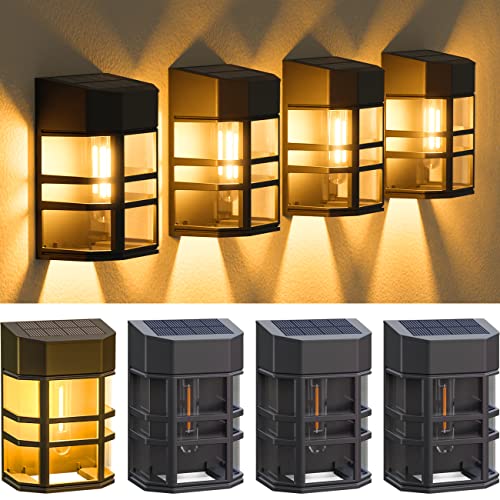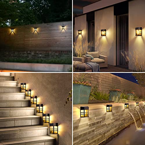 【4 Pack 】 Solar Fence Lights Outdoor Garden, Solar Wall Lights Outdoor Waterproof Solar Lights Outdoor Garden LED Solar Powered Wall Lights for F