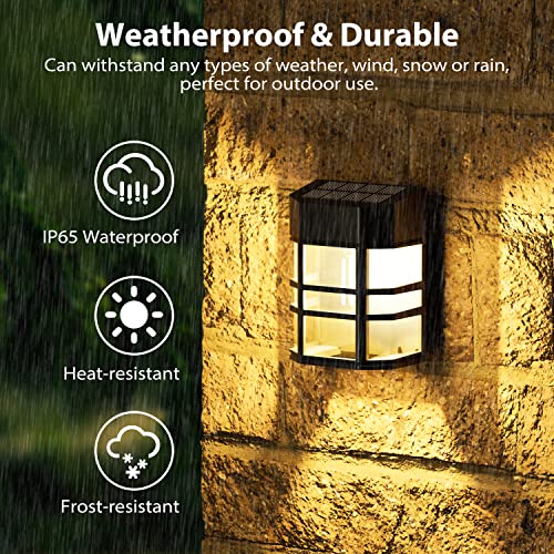 • ✨【Upgraded Solar Fence Lights Outdoor Garden】Come with 4 pack bright solar fence lights, the newly upgraded LED bulb provides warm white light of 3000K. The solar lights outdoor garden are a beautiful addition to your house, providing warmth and beautiful decorative lighting, with a classic look and vintage style, which can enhance the overall aesthetics of your home.