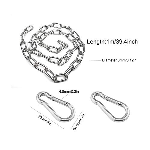 1 Meter Stainless Steel Hanging Chair Chain with Two Carabiners,Hanging Kits Hammock Chair Punching Bags Pilates Heavy Duty Indoor Outdoor Hardwa