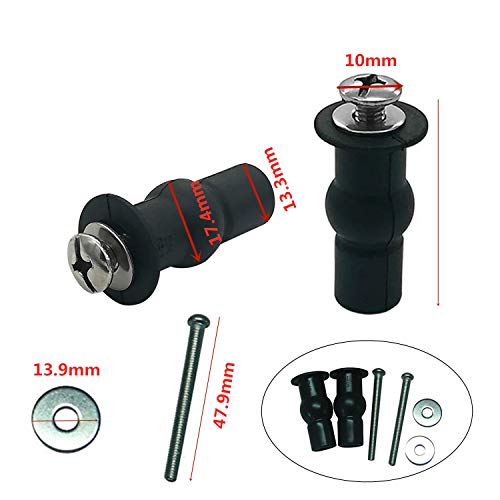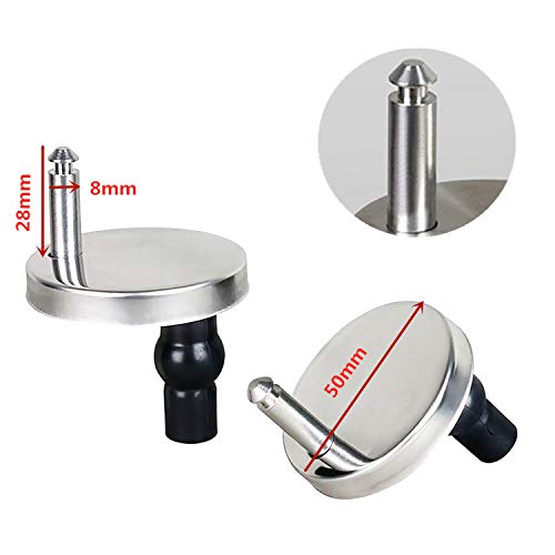 Product Description Specifications: Type: Toilet Seat Top Fixing Hinge Material: Stainless steel & rubber Screw Length: 47 mm. Rubber Fixing: 40 mm. Pin Length: 30 mm, pin diameter: 8 mm. Features: - The toilet seat fittings and fixtures are made of high-quality stainless steel and rubber, which is sturdy, and durable for long time use. - The rubber bungs slide into the holes perfectly and when you tighten the bolts they squash up in the holes making a good tight fit. - Easy to replace the top fixing toilet seat fittings. These fixings are attached from above with the aid of only a screwdriver. - Great for broken or old toilet seat hinges. Fits most standard toilet seats with a top fix hinge. Built-in Nut Fine copper nut Preservative Not easy to rust Robust and reliable Durable for use Good Elasticity Expanding Rubber Screws Elastic Rubber Material No more slip-sliding away, you can fix 2 loose toilets seats. Hinge blind hole fittings suitable for 14-19 mm hole, UK standard size. Easy to install compact design, made with high quality rubber. Work great with top fixing toilet seats, no need to tight screw from bottom. Can be installed and used repeatedly Stainless Steel Cover Sheet Material: Steel Diameter: 50 mm Color: Silver Main Structure Material: Plastic Diameter: 28 mm Color: White Rubber Cork Material: Rubber Diameter: 18mm (thickest) Length: 40 mm Color: Black Toilet Seat Hinges Expanding Rubber Top Well Nuts Screws â–º100% Brand New Toilet Seat Top Fix Hinge Pack. â–ºMade of good quality materials, excellent toughness, sturdy, stable, durable. â–ºReplacement for back to wall or wall hung toilet pans. â–ºGreat for broken or old toilet seat top fixing fitting. â–ºFits for most standard toilet seats with top fix hinge. â–ºCompact design make it easy to install,quick disassembly and easy to clean.