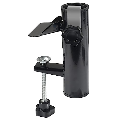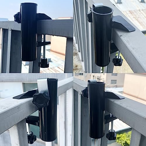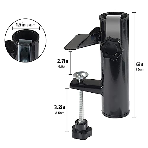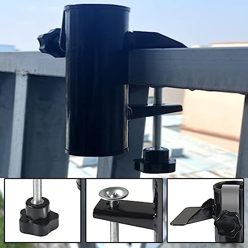 - â™– Well Designed â™– Umbrella holder clamp, with a height of 15cm/6in and an inner diameter of 3.8cm/1.5in. The maximum adjustment range of the parasol holder balcony railing is 6.5 centimeters/2.7 inches, which is suitable for most common types of sunshade umbrellas on the market. It can be firmly fixed on balconies, desks, and other places. Please pay attention to the size before purchasing.