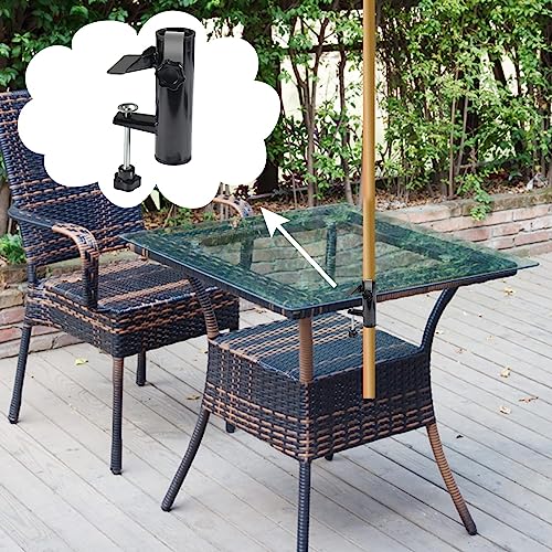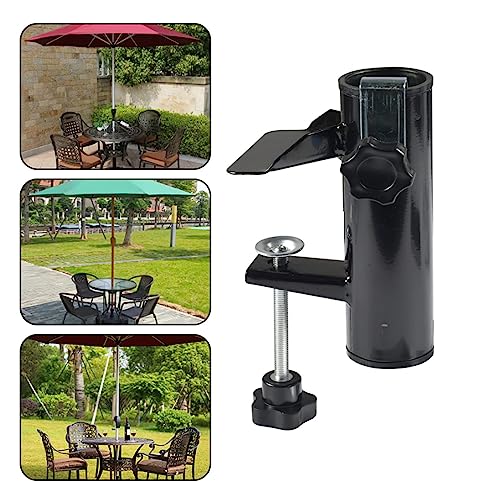 - â™– Strong and durable â™– The entire body of the parasol clamp is made of sturdy and durable metal materials. The surface of the outdoor patio umbrella stand is coated with black paint, which is anti-corrosion and rust proof, not easy to deform, has a long service life, is of moderate size, and does not take up too much space, making it easy for you to pick up and carry.
