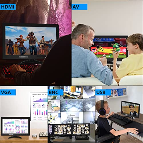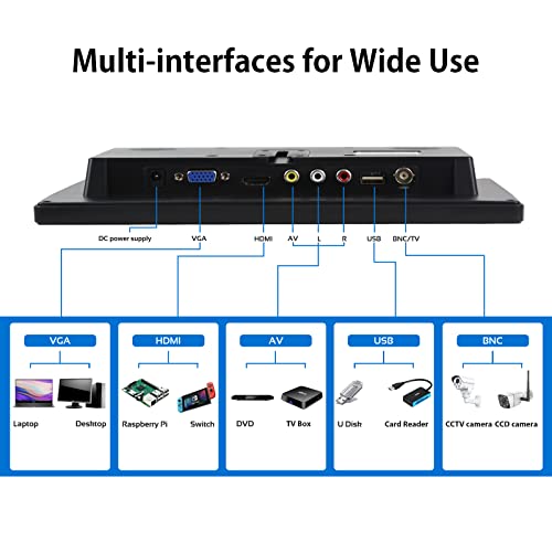 • 2.【Rich Input Interface】This small security monitor provids several input ports, including 1 x HDMI port for Raspberry Pi, DSLR,PC or other devices with HDMI port, 1 x USB Port, 1 x VGA port for PC or Laptop. VCD,TV-Box and so on,1 x BNC port for CCD or CCTV.