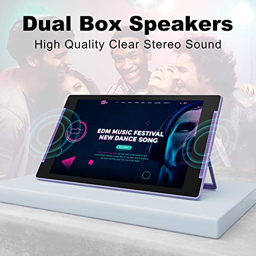 • 【Patented Stand Design & Dual Box Speakers】Smart tablet has a unique patented metal back stand design, in case you video, writing, cooking stand at will, Better increase the use experience. Built-in two box speakers to bring a wonderful auditory experience.Tablet with tempered film, already installed.