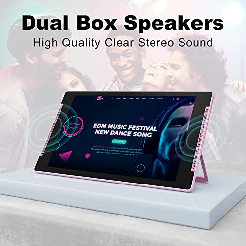 • 【Patented Stand Design & Dual Box Speakers】Smart tablet has a unique patented metal back stand design, in case you video, writing, cooking stand at will, Better increase the use experience. Built-in two box speakers to bring a wonderful auditory experience.Tablet with tempered film, already installed.