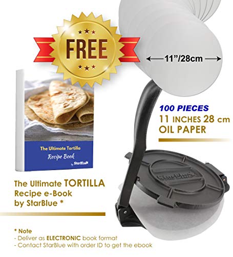 - ✅ FREE 100 PIECES OIL PAPER – Our flour tortilla press comes with free 100 pieces oil paper that you can use to separate your pressed doughs and make your cooking more convenient