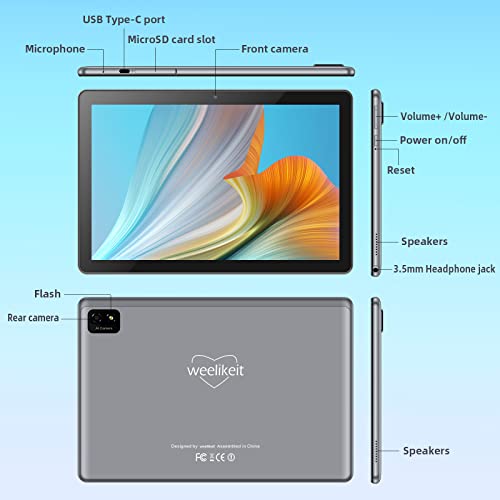 - 【AC dual-band wifi+ Ultra-long battery life】The 10-inch tablet features AC dual-band 2.4G/5G high-speed WiFi for a faster online internet experience.weelikeit Android tablet comes with a battery of up to 6000mAh. Achieve up to 6 hours video battery life, use Type-C interface 9V2A, 18W fast charging, charging more convenient and faster.