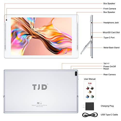 • 【Android 12 & GMS Certification】TJD Tablet Equipped a Powerful CPU with Android 12.0 System.Delivering quick app launches, smooth games and videos, and great overall performance.The tablet 10.1 inch has been updated to android’s latest version android 12.0 go version, the processing performance of the 12.0 system has been significantly improved, you can download apps like Tiktok Facebook, Twitter, and Instagram.