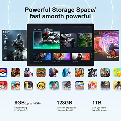 • 💥Powerful Configuration: 14GB+128GB/1TB TF Memory and Octa Core Chip💥10 inch tablet hardware carries 8GB RAM and 6GB virtual memory that system can upgrade, making the tablet running speed far ahead of other competitors. 14GB RAM makes it easy for large games. 128GB ROM and tablet support 1TB TF card, so that the tablet has enough space to store a lot of films or APP. T606 processor allows the tablet to handle multiple tasks at the same time. Tab11SE is the best choice for gaming tablets!