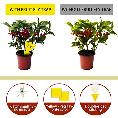 - Safer Choice for Pest Control: Tired of always having to deal with nasty fruit flies in your kitchen or home? Get rid of having to use harsh sprays? The non-toxic yellow fruit fly traps, insecticide-free. Gnat trap use bright colors and glue to catch pests. It will not release harmful gases and cause adverse reactions, nor will it affect the growth of plants. No harm to people and pets. Ideal for flowers and vegetables, indoor plants and greenhouses.
