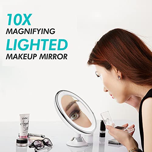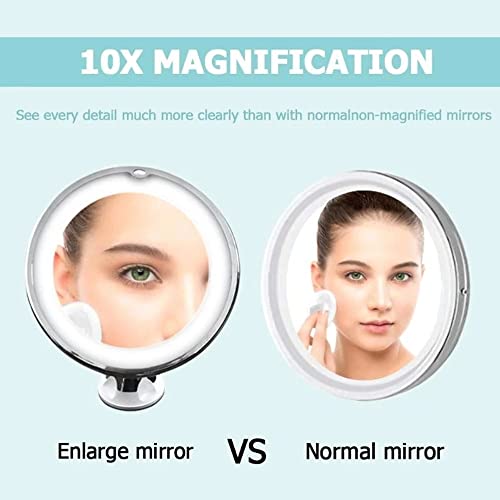 10 x Magnifying Lighted Makeup Mirror, 6.7'' Bathroom Mirror with Suction Cup, Shaving Mirror, Light Up Mirror Vanity mirror, LED Travel Vanity M