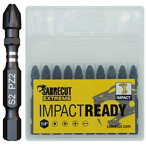 - SabreCut Extreme professional quality PoziDriv (PZ2) screwdriver bits specially designed for use with impact drivers, bits have forged tips for greater impact resistance and a longer lifetime
