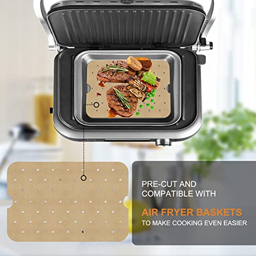 - 【UNBLEACHED AIR FRYER PARCHMENT】Air fryer parchment is made of 100% food grade pulp, oil proof, waterproof, non-absorbent, all natural, unbleached, 100% safe for everyday use.
