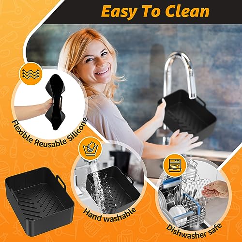 - [Easy to Clean] This air fryer accessories set is dishwasher safe, saving time and effort. The air fryer silicone liners feature soft and flexible that can easily flip inside out. Easily clean the air fryer silicone liners from food residue and grease. And the stainless steel rack is rustproof and durable.