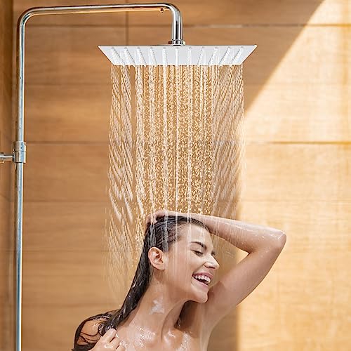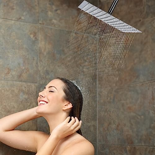 - Easy-to-clean Nozzles: The 12inch square rainfall shower head has144 silicone nozzles, which can provide a large area of rain. The silicone nozzles are not easy to clog and can prevent limescale deposition, making cleaning and maintenance easier.