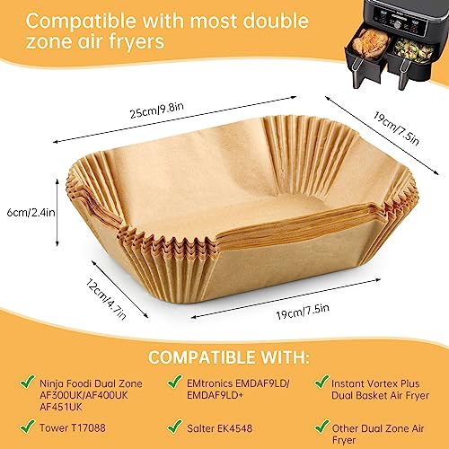 - PERFECT FIT FOR NINJA DUAL ZONE AIR FRYERS: Measuring 18.5cm x 11.5cm x 6.5 cm, these air fryer paper liners are designed to fit perfectly in your Ninja AF300UK AF400UK air fryer, as well as other dual zone air fryers like EMtronics EMDAF9LD/EMDAF9LD+ and Instant Vortex Plus.