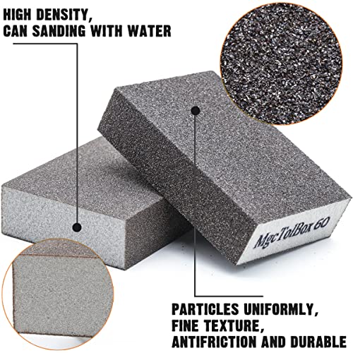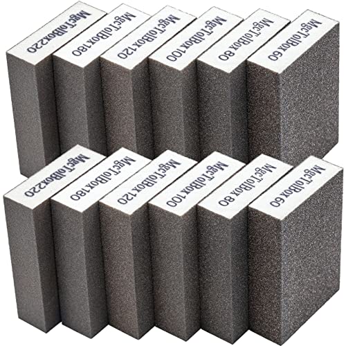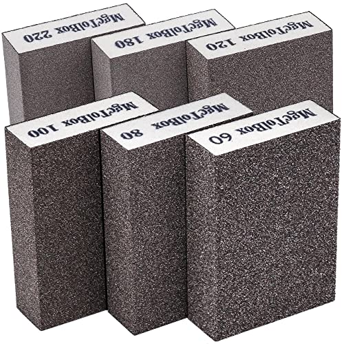 Product Description Aluminum Oxide & High Density Sponge material make grinding more efficient. Sanding Sponge Type 60# is Equivalent to The Coarseness of Sandpaper 100P, Sanding Block 80# = Sandpaper 120-180P, Sanding Block 100#= Sandpaper 240-400P, Sanding Block 120# = Sandpaper 500-600P, Sanding Block 180# = Sandpaper 800P, Sanding Block 220#= Sandpaper 1000P. What are the advantages of MgcTolBox sanding block kits? Assorted Grit Sanding Blocks:60/80/120/180/220 Sand sponges in 6 sizes from coarse to extra fine. Low grits for sanding down previous finishes and higher grits for final finishing and polishing. Each sponge comes with quality abrasive material on 4 sides. It can be cut arbitrarily according to the grinding requirements. Wet and Dry Sanding Uses of Wet Sanding Blocks Excellent on wet or dry sanding, can be used directly in the water. The resilience of the sanding block is excellent, plasticity is strong, and it is not easy to tear. Sand paper brick for wet polishing to minimize dust. Any clogging up with sanded material, just rinse with water, Air drying, and reuse. In the kitchen, clean metal pans, stove grease and stainless steel sinks. In swimming pools, stained tile surfaces can be cleaned. In the courtyard, scratches on the tile pavement can be treated. In terms of shipping, it can clean and polish the rust and corrosion of ship accessories. Furniture Refurbishment & Primer Treatment Sanding blocks for wood, ideal for a broad range of uses from wood stripping to final finishing. Sink Stain Cleanup, Remove scratches Our washable and reusable sanding sponges are perfect for scrubbing and cleaning sinks. Metal Rust Removal & Stubborn Stain Treatment sanding sponges removes stubborn stains from stainless steel cookware. Also suitable for porcelain and glass. Auto Parts Repair & DIY Creation Sanding Blocks is suitable for polishing auto parts, plastic shells, amber jade, DIY and craft creations.