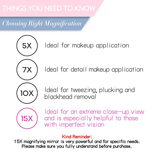 - 15X POWERFUL MAGNIFICATION An extreme close up view is ideal for detail makeup application and is especially helpful to those with imperfect vision