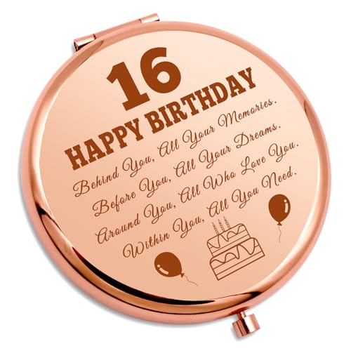 • 1.Happy 16th Birthday Gifts for Girls - Personal Makeup Mirror engraved with 'Happy 16th Birthday '.Amazing engraved mirror for 16th birthday celebration milestone in her life, good birthday gift to surprise the 1 who age 16. The girl's 16th birthday surprise is ready,now all you need is a gift that’ll bring her a huge smile!