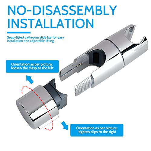 - 【Easy To Install】No tool needed, this shower head holder can be easy to replace by adjust the bayonet to screw into the slide bar and tighten, it means you don't need to take the slide bar apart and off the wall, save your workload and times. Enjoy the flexibility of the showerhead holder and the versatility of the handheld shower head, enjoy the comfort.
