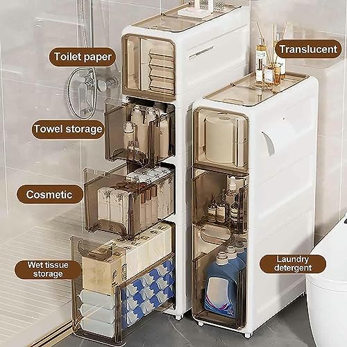 - 【Easy to Move and Clean】Narrow bathroom floor cabinet is built on four silent pulleys that can be easily pulled out and pushed in to move smoothly on the floor surface. Smooth closed drawer storage space makes it easy to clean with a damp cloth.