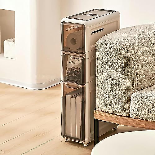 - 【Small Size】4 Drawer Upright Storage Units are suitable for tight spaces and crevices and can easily slide into the narrow crevices between the refrigerator and the wall or between the washing machine and the bathroom. White Slim Storage Drawer Tower will add a feeling of elegance and luxury to your room.