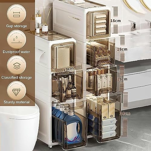 2/3/4 Tier Bathroom Floor Cabinet 7in Vertical Storage Unit with Drawers & Casters Large Capacity Side Storage Organizer Tower, Slim Toilet Paper