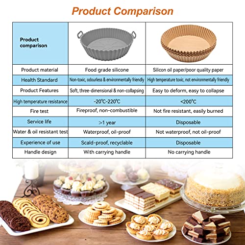 - Abrasion resistant material: Air fryer accessories selected high quality thickened silicone material, scratch, abrasion, tear and dirt resistant. reusable air fryer basket ( replacement of parchment paper liners ) can be used for grill frying, steamer liners or microwave baking food placement etc.