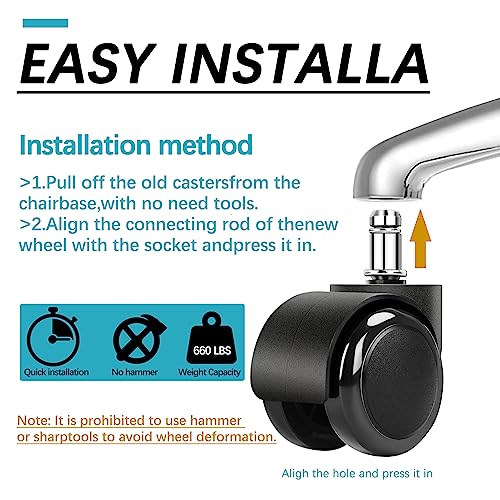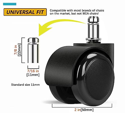 Home Home Office Furniture 2 Inch Black Silent Stemless Caster,Office Chair Wheels Replacement Chair Casters,Furniture Casters, Replacement Swivel Chair Accessories,5pcs,15