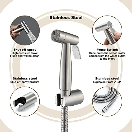 - ☞Bidet Sprayer Set Included: Come with portable sprayer head, unplug the diverter, sprayer holder and 1.5m hose