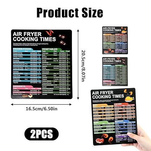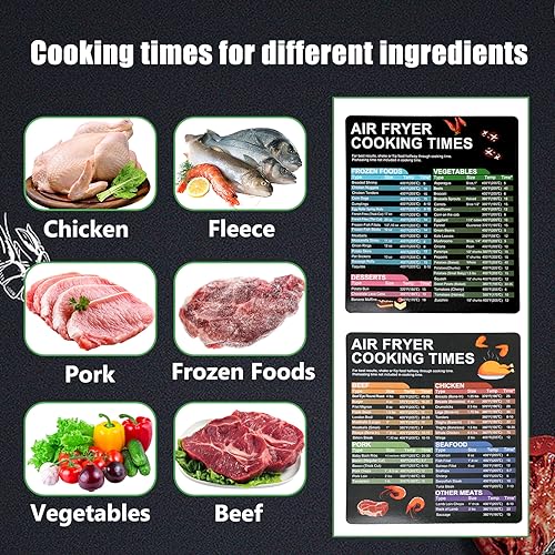 - 🍗【Product Material】: This air fryer magnetic cooking timetable is made of durable material with magnets, which can be firmly attached to the refrigerator or other metal surfaces. Waterproof and sturdy enough to withstand the wear and tear of everyday use, it's also easy to clean with just a wipe to remove surface grease and grime.