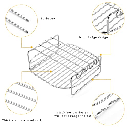 - 【Wide Compatibility & Convenient】Air fryer rack accessories are convenient and practical, and can be used with any air fryer (2.5QT/2.6L above). Double layer rack and steamer rack can maximize the cooking area. They also can separate the plates with hot food from the table to protect the table surface.