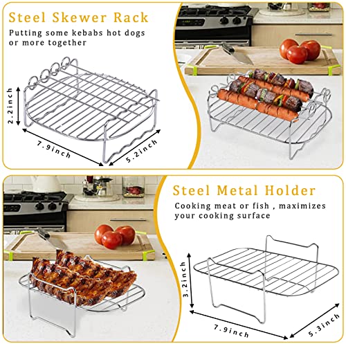 - 【Air Fryer Accessories Set of 7】 Package includes 1 x Multi-purpose steam grill, 1 x Double layer rack with 4 skewers, 1 x Oil brush. a complete set of barbecue accessories help you make bread, pizzas, pies, kebabs, and more delicious, healthy food while saving you time and effort.