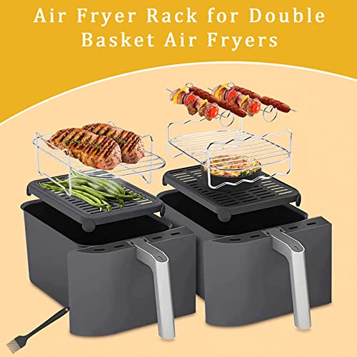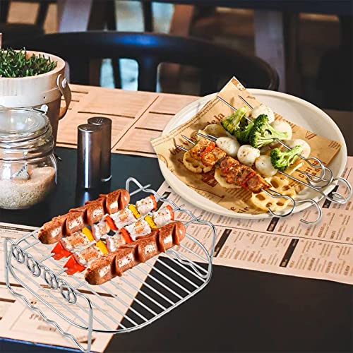 - 【Make Preparing Meals Easier】Double Layer rack with 4skewers for more versatile air fryer recipes, allow you put some vegetable and meat shish kabobs on the top layer. The Stackable metal rack allow you to cook even more, and keep the sticky food away from button of the air fryer.