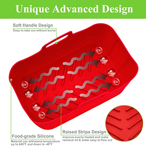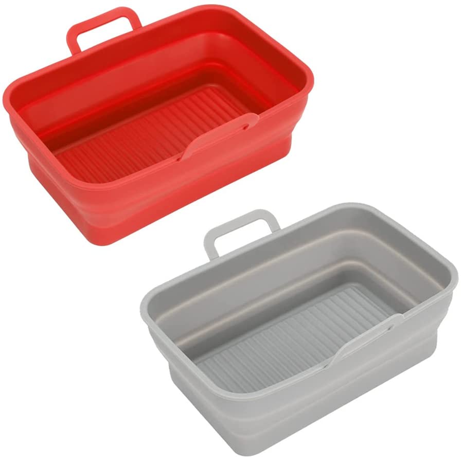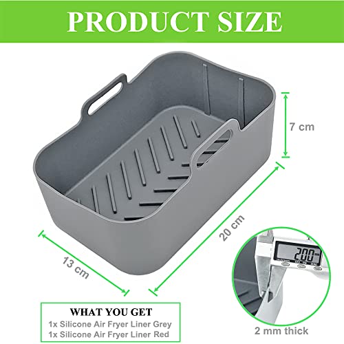 - 【What You Get】1pc air fryer liner grey and 1pc air fryer liner red. When the air fryer has just finished working, the inner silicone liner will be very hot, please take it out carefully with heat resistant gloves. The silicone airfryer grill pan has a stain-resistant surface, can be flipped over for easy cleaning and it is dishwasher safe, avoiding the trouble of hand washing.