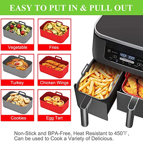 - 【Liners for Ninja Air Fryer Dual】Our air fryer silicone basket liner are specially designed for Ninja Foodi Dual AF300UK 7.6L/ DZ201 Foodi 8 Quart, can cook two cooking at the same time, is reusable, more environmentally friendly, great alternative to disposable parchment paper liners.
