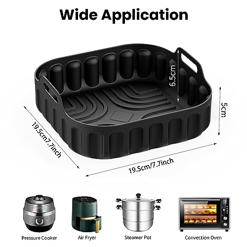 - 【Wide Use】7.7 inch reusable air fryer silicone basket for most air fryer. It can also be used for microwave oven baking, barbecue frying, steamer lining, baking or food placement. It is a great choice for family baking and going out camping.