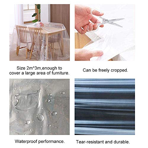 - [Extra large size]: Reusable plastic dust cover for furniture 2X3M. The extra large size is suitable for covering most furniture (such as sofas, sofas, porcelain cabinets, chairs, dining tables or beds), providing effective protection for your furniture. ) To protect them from dust, insects, etc.