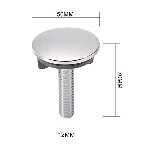 - Plug size: 50mm x 10mm; Screw size (DxL): 12mm x 60mm. Can be used for sink, basin and bath tub - just check the hole diameter