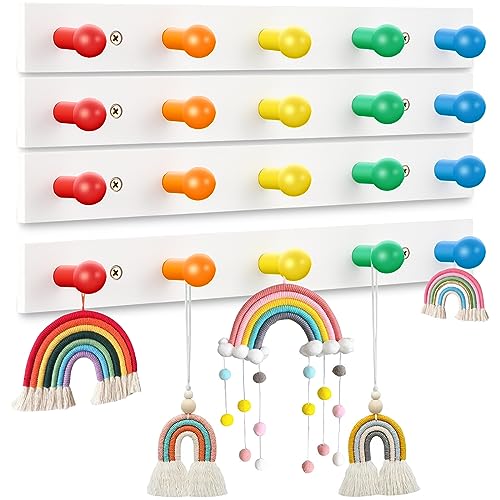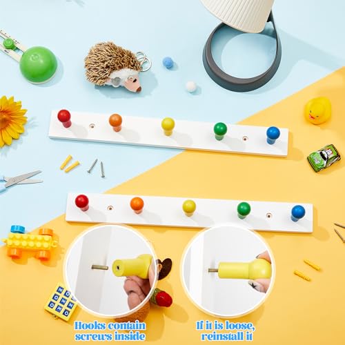 - Quality Material: kids wall coat hanger wall mount is made of quality wood material, sturdy, reusable, not easy to fade or break, the paint finish process makes it smooth and won't hurt your clothes or fingers; Note: there are mounting screws on each small colored hook, if you accidentally unscrew it, you can reinstall it.