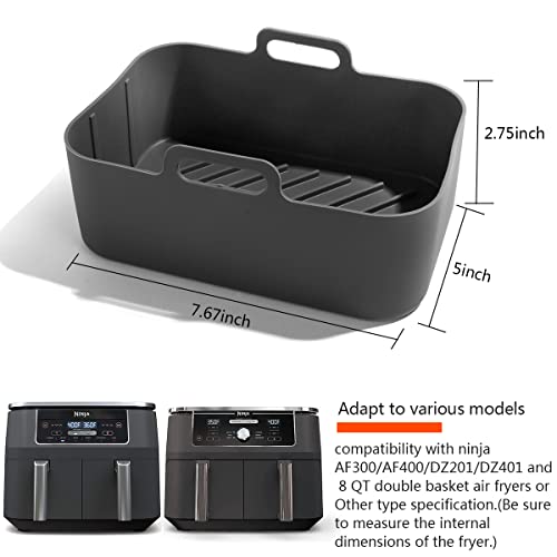 - 【APPLICABLE MODEL】:Compatible with ninja AF400uk/AF300UK/DZ201/DZ401 and 8QT double basket air fryers or Other type specification.Size : 7.67*5*2.75 inches(Be sure to measure the inside of the fryer before purchasing)(Note: A Bit Small For Ninja Dual AF400UK)