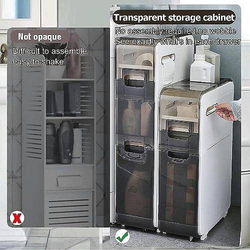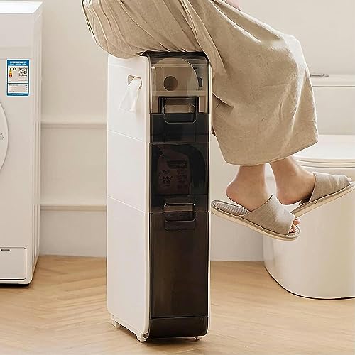 • ● Narrow and small design: Our narrow bathroom storage are suitable for any place in your home. The small size 6.9 "W x 16" D x 23.3 "H can be placed in any narrow space. The 5.5x14x12.5in large drawer at the bottom can store 4-6 rolls of toilet paper (normal size) at one time.