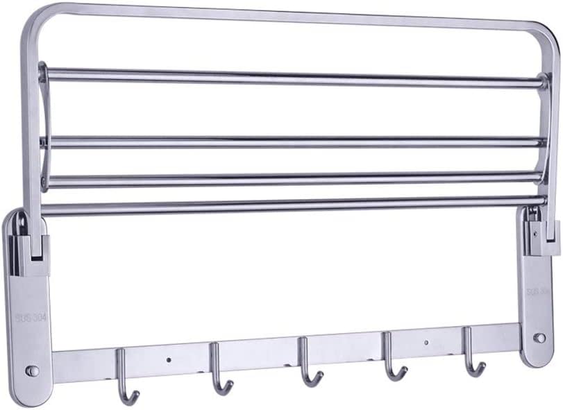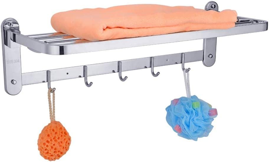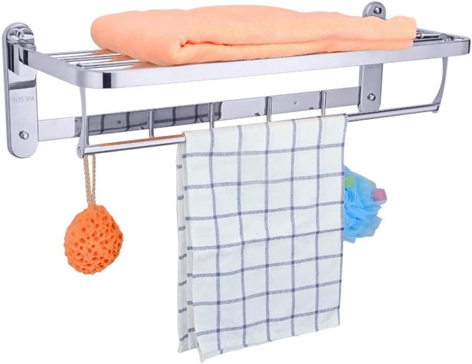 - DOUBLE TOWEL BAR DESIGN: There is a double row towel shelf designed, 60cm long, loadable up to 50 kg, with 5 hooks for storing and drying your towels.