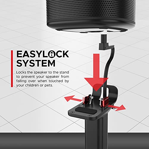 • 🔒 PATENT PENDING DESIGN - Our "Easylock System" locks the speaker to the stand meaning your speaker won't easily fall to the floor if touched by your children or pets.