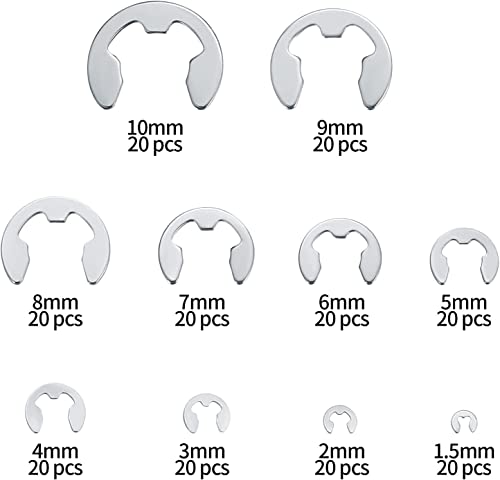 - Package Contents: The kit includes a total of 200 U-clip snap rings in sizes M1.5/M2/M3/M4/M5/M6/M7/M8/M9/M10, with 20 pieces for each size, providing ample supply for daily use.