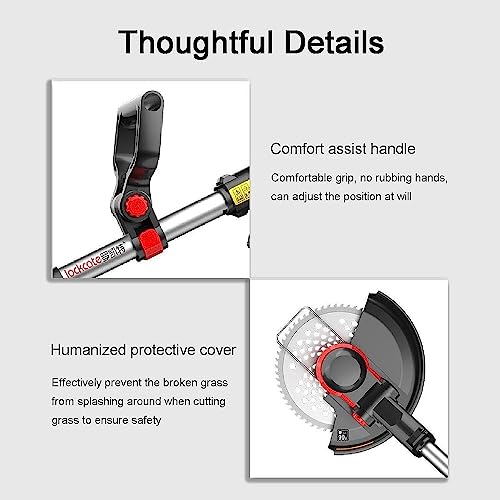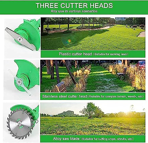 - 2 Style Blades Combination: The mower comes with 2 styles of blades: stainless steel metal blade for mowing lawns, weeds and small shrubs, manganese steel circular saw blade for mowing grass and grass. Trim thick branches.