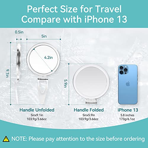 • ✔【WITH 20X MAGNIFICATION】made with optical quality glass; 5Inches round. Most 20x magnifying mirror is 4inches big, this is the new size, 5inches big.We listen to our customers which is why we have created this larger 20x mirror for your specific needs. It's not too big and not too small making it just the right size for use at home and on the go.