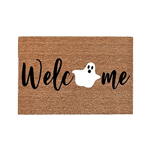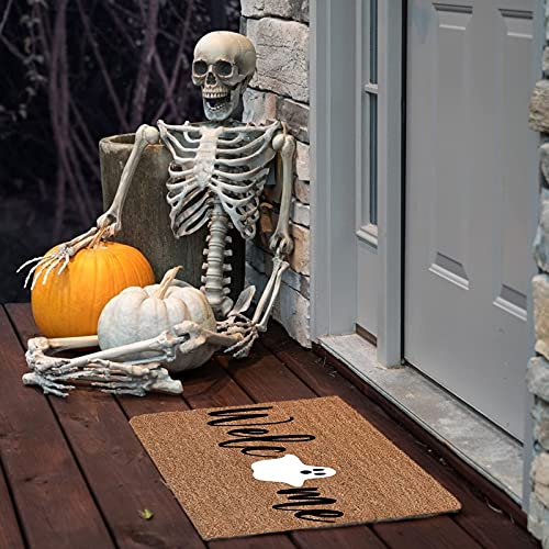 • WELCOME TO HALLOWEEN: In a brown color with a welcome pattern of pumpkins and ghosts, it's festive in any house. These fun Halloween patterns make this doormat ideal for outdoor patio entrances, camping, porch doors, garages, gardens, laundry rooms, bathrooms, living rooms, office entrances or indoor bedroom or kitchen doors.