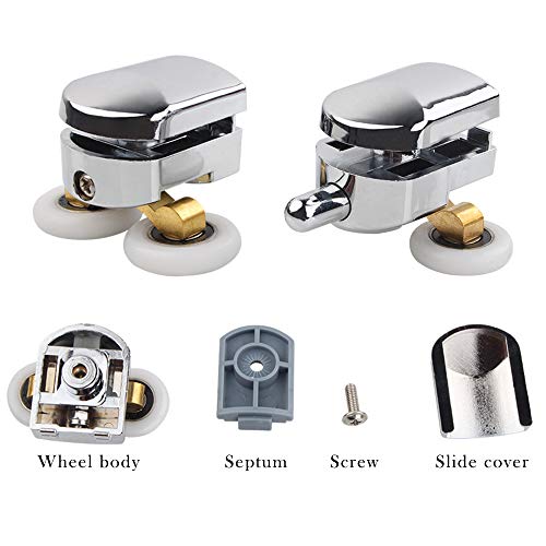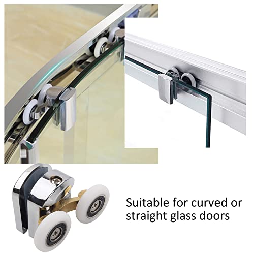 23mm Shower Door Rollers, 4pcs Sliding Shower Doors Wheels Replacement Roller Runner Wheel 2 Top & 2 Bottom Chrome Plated Door Roller fit Glass H